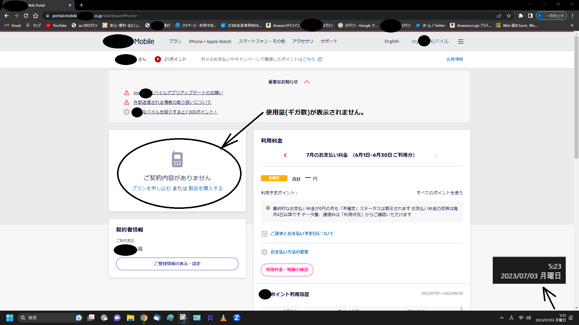 2023/07/03 AM5:23 に使用量(ギガ数)を確認しようとしたら