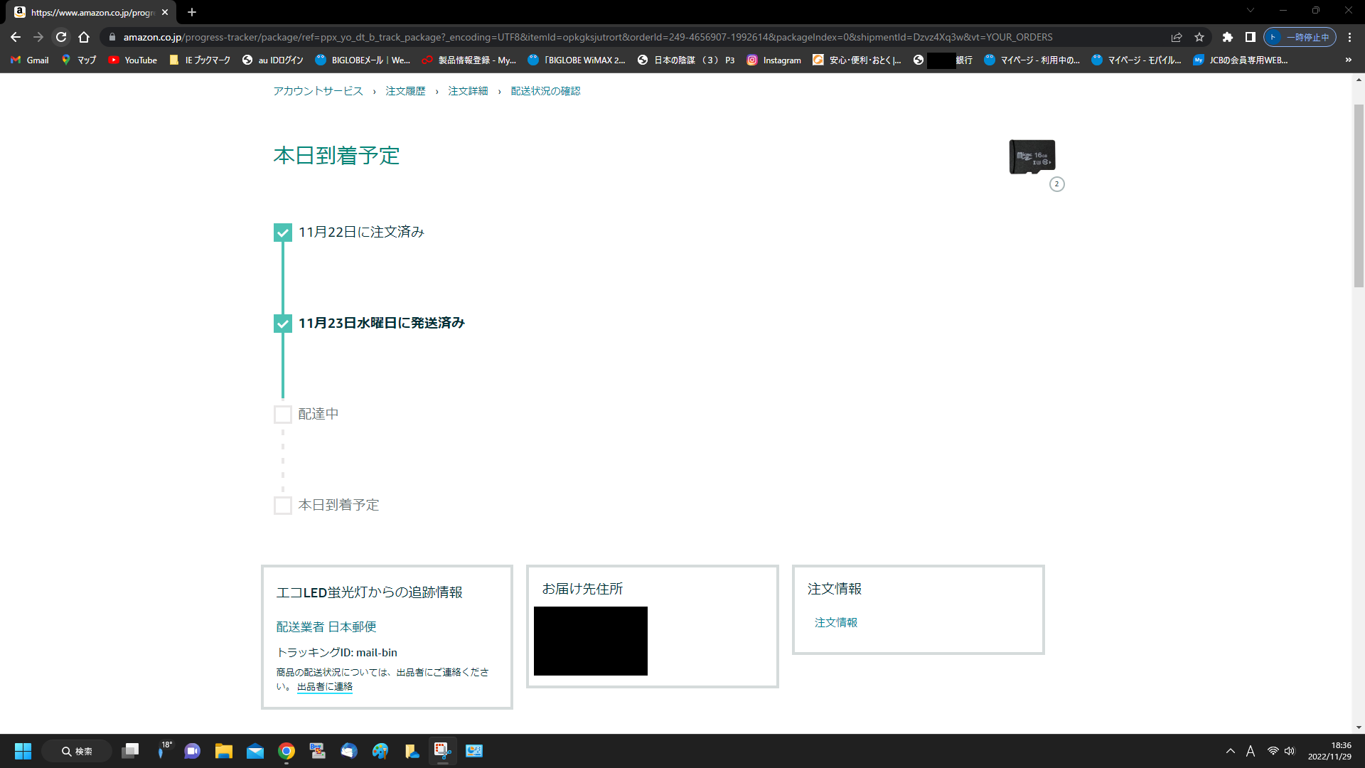 昨日(11月28日)に、商品が届いたのに