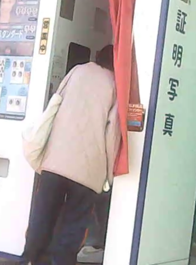 ストーカー行為を否定する為に、証明写真機で写真を撮ります。