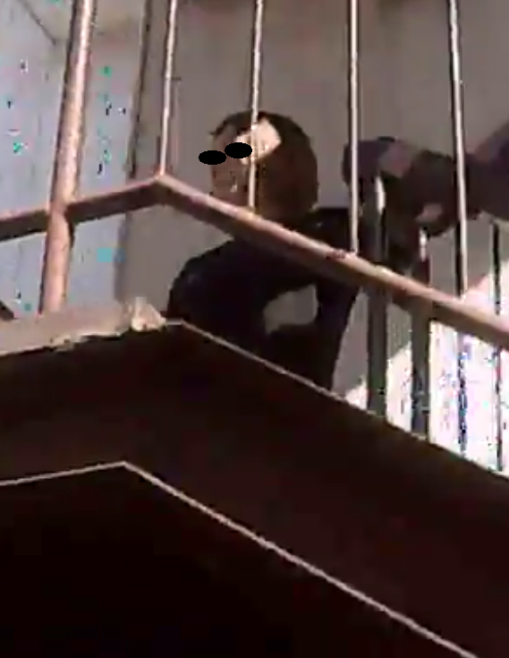 ストーカー行為を否定する為に、階段の踊り場で誰かを待っています。