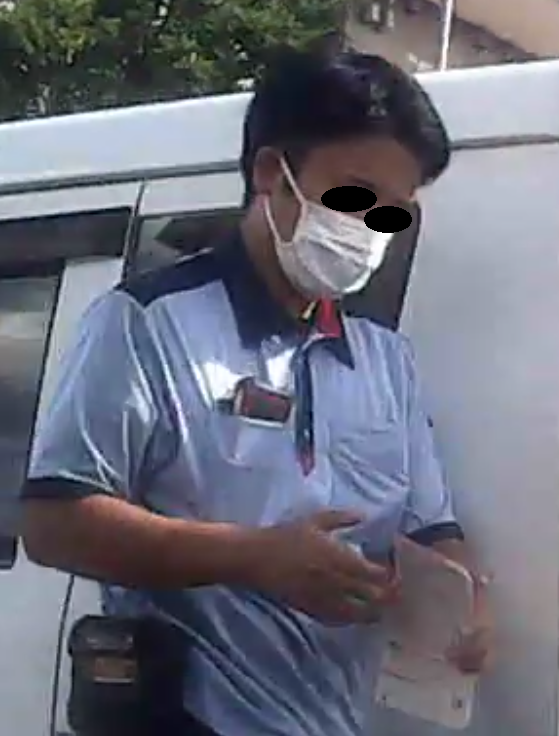 ストーカー行為を否定する為に、宅配便を装っていました。