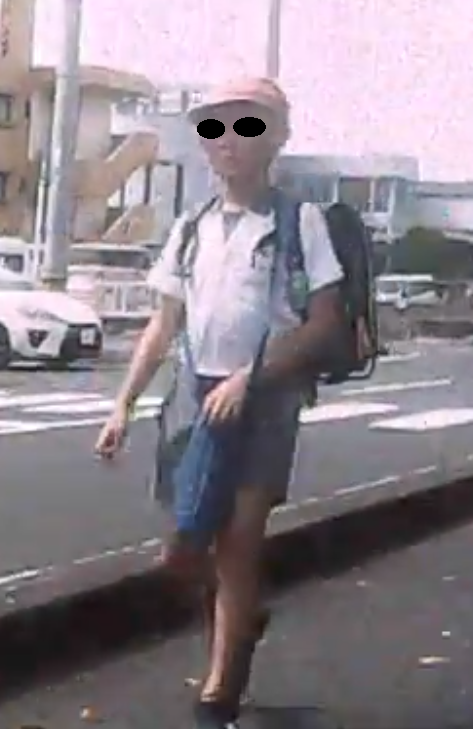 この小学生は、私の前を横切った後