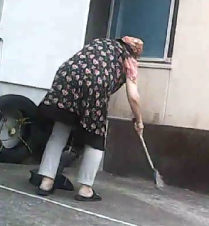 ストーカー行為を否定する為に、庭の掃除を装います。